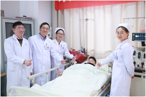 1月8日,在湘雅二医院血液内科造血干细胞采集室,两位分别来自湖南邵东和衡阳的造血干细胞捐献者经过5个小时左右的采集,成功捐献出造血干细胞( 186 ml)和( 195 ml),这两袋造血干细胞将立刻在取干志愿者的专门护送下送往英国和中国香港为生命续航,救助一位5岁英国白血病儿童和一位50岁的患有白血病的香港同胞。湖南省红十字会造血干细胞管理中心张赞主任介绍道:“这是我省2020年首次境外捐献造血干细胞,也是中华骨髓库第9361例和第9362例”。湘雅二医院副院长柴湘平、血液内科徐运孝主任一同看望了造血干细胞捐献者。