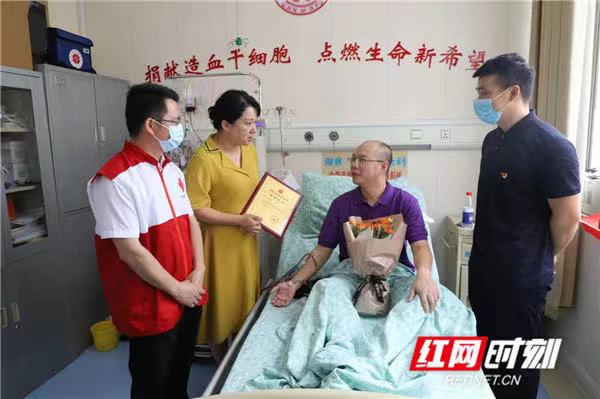 当天,湖南省造血干细胞资料管理中心主任张赞、永州市红十字会专职副会长陈志标等前往湘雅三医院探望慰问,表达敬意。