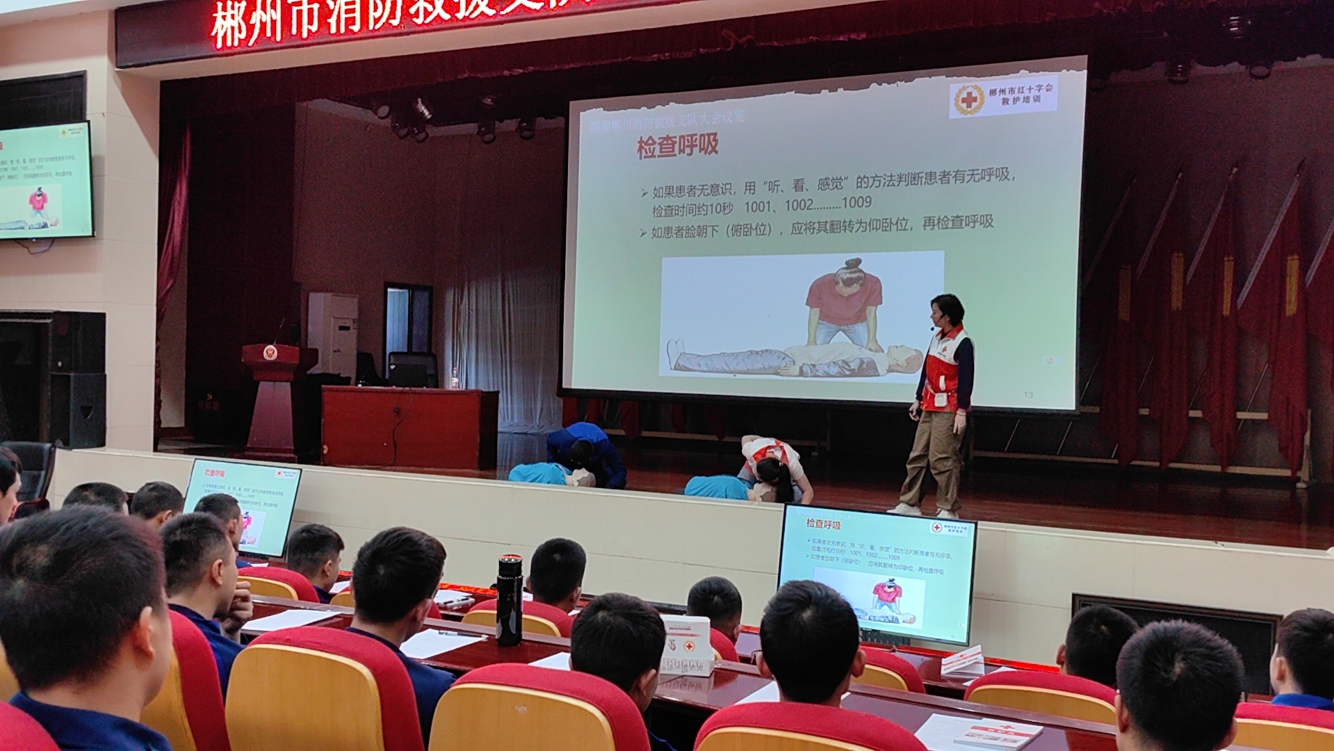 关爱生命,救在身边。为切实提高基层消防员在灭火和抢险救援过程中的应急救护水平,增强救人和自救能力,10月30日,由郴州市红十字会组织开展的2023年第18期救护员培训班走进市消防救援支队,并对经过培训且考试合格者颁发“红十字救护员证”。